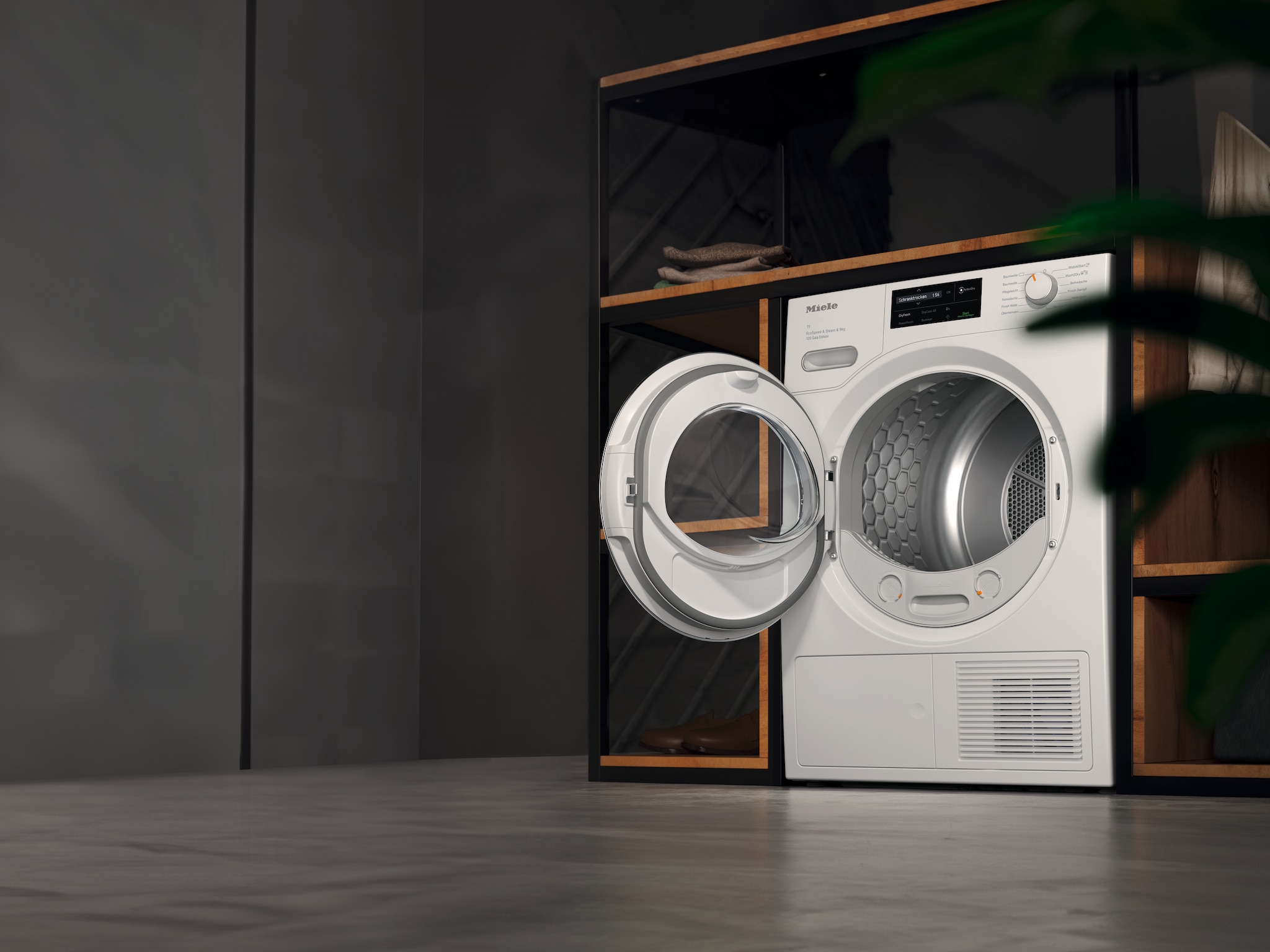 - 5.În timpul fazei de dezvoltare a seriei T1 de uscătoare, Miele a testat modele și componente de bază în 5000 de cicluri de uscare (= 5 cicluri de uscare pe săptămână timp de 50 de săptămâni pe an) în diverse programe. Mai multe: miele.com/20years