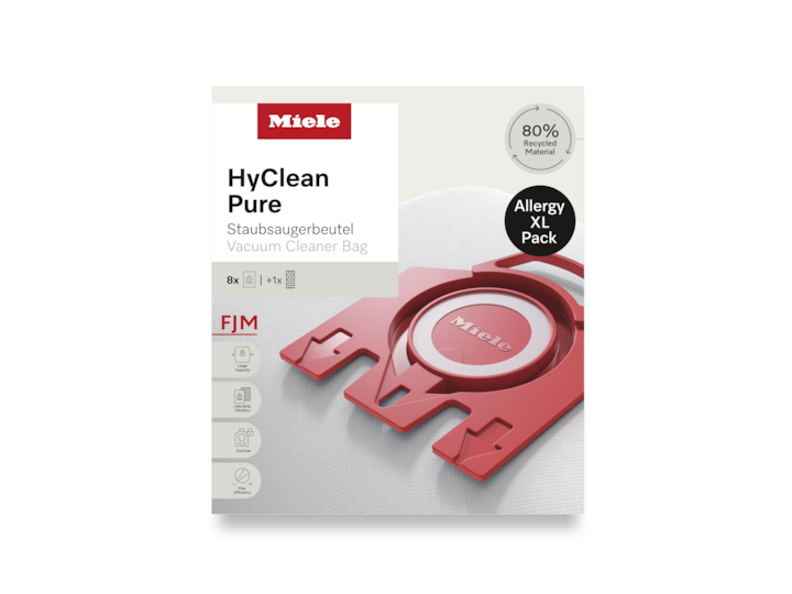 Sacii de aspirator Miele sunt fabricați din 80 % materiale reciclate și oferă o performanță maximă de filtrare.