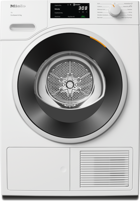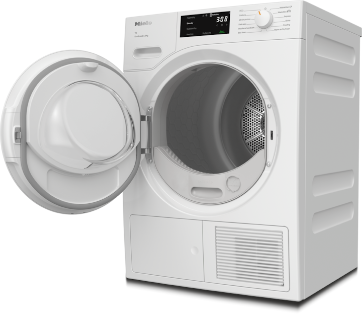 - 5.Economii de timp calculate comparativ cu uscătoarele Miele fără EcoSpeed cu aceeași încărcătură maximă și eficiență energetică similară. Testat la programul „Bumbac“ cu o încărcătură maximă.