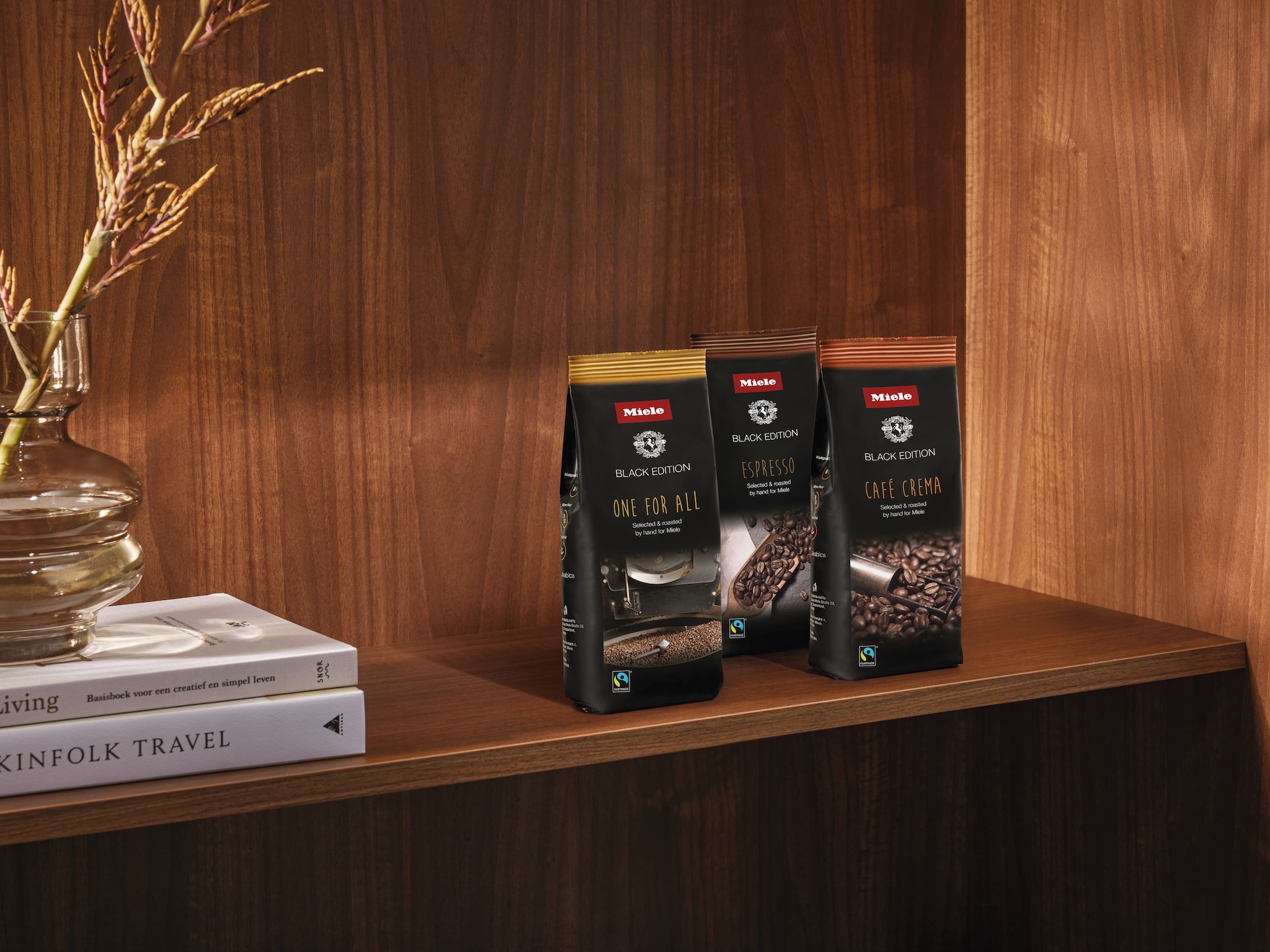 Patru tipuri de boabe de calitate au fost selectate pentru amestecul de cafea exclusivist Miele Black Edition.